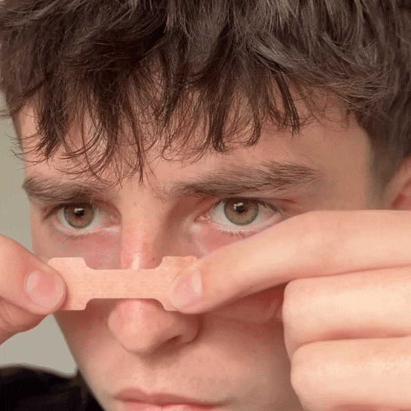 Gently rub the strip to secure it into place. Take a deep breath. Better breathing begins now.